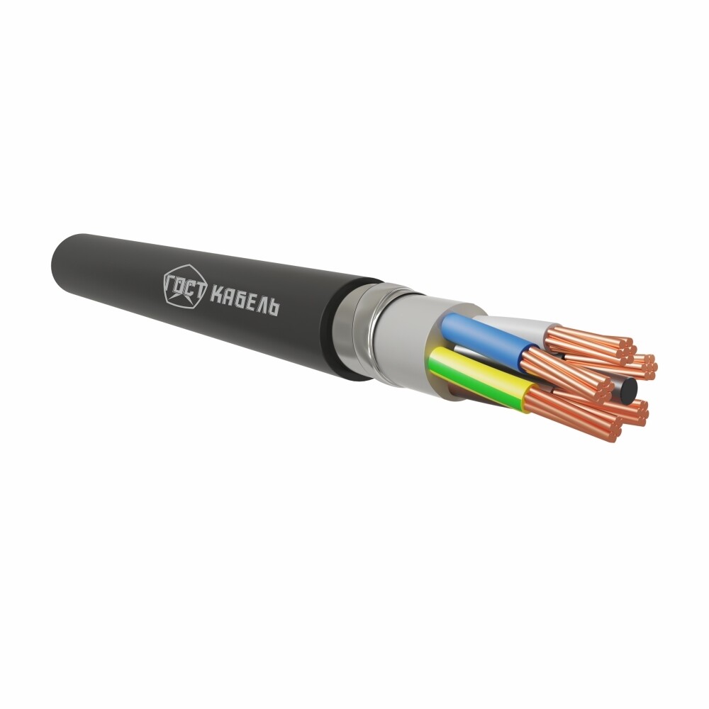 Кабель с медными жилами, с изоляцией из ПВХ пластиката, бронированный стальными лентами с защитным шлангом из ПВХ пластиката, не распространяющий горение по категории А с низким дымо- и газовыделением.