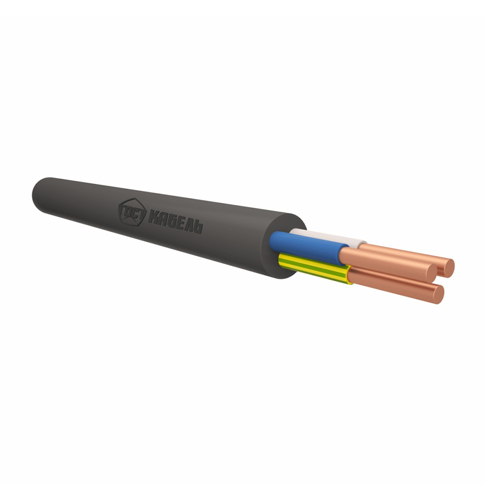 Кабель с медными жилами, с изоляцией и наружной оболочкой из ПВХ пластиката, не распространяющий горение по категории А с низким дымо- и газовыделением.