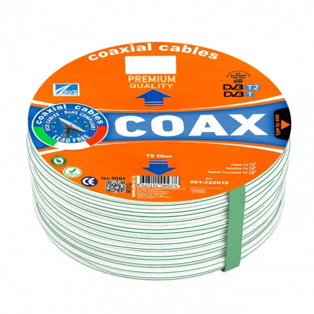 Кабель коаксиальный телевизионный SAT 703 1х6,8 мм экранированный AVS Electronics белый (100 м)