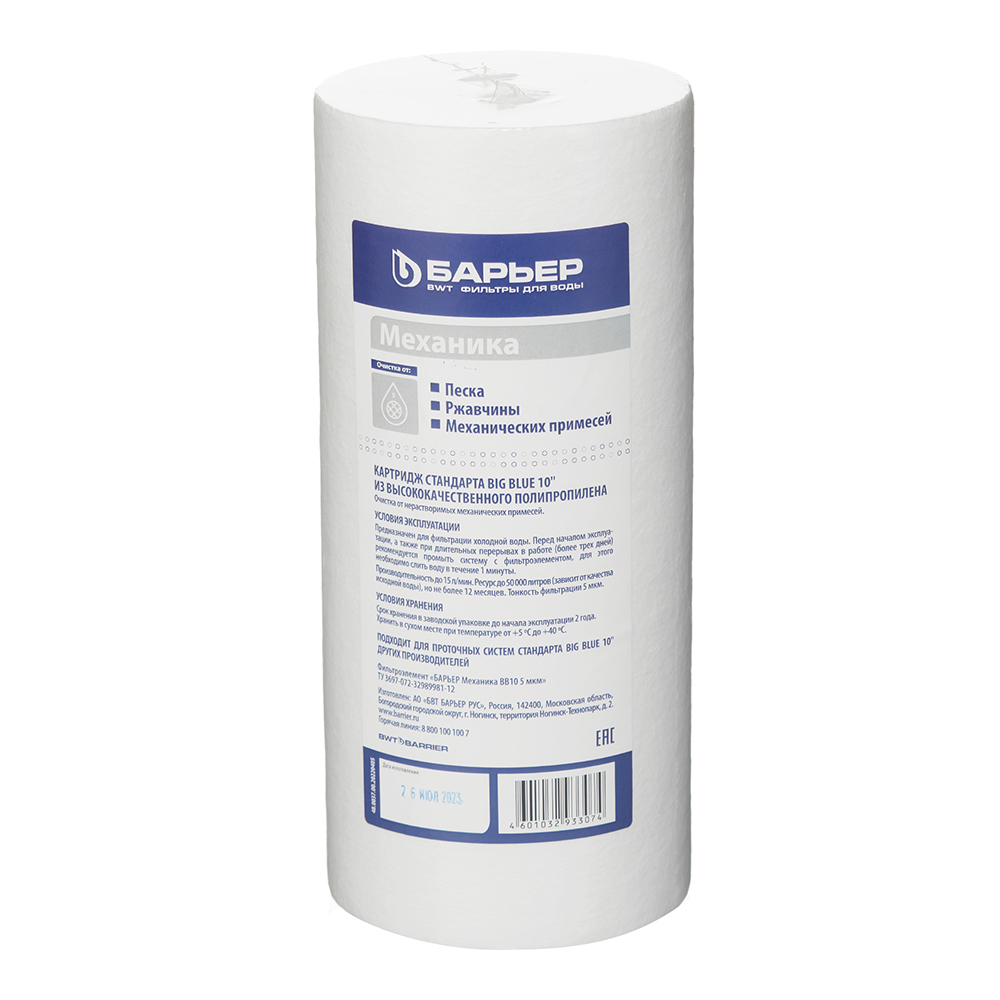 Предназначен для применения в магистральных фильтрах стандарта 10BB. Картридж очищает проточную воду от ила, ржавчины, песка и др. Основные преимущества такого картриджа для очистки воды – высокая производительность (до 10 л/мин) и большой рабочий ресурс (до 50 000 литров).