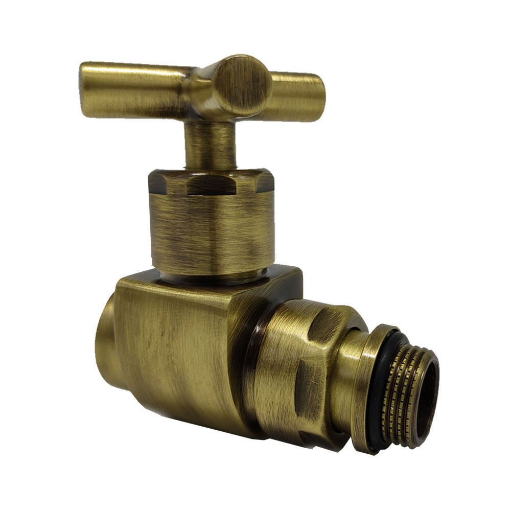 Вентиль на подачу SR Rubinetterie прямой серия «Prestige & Minimal», ручной регулировки, преобразуемый в термостатический, с механизмом предварительной настройки, соединение для железной трубы, хвостовик с герметичной прокладкой.