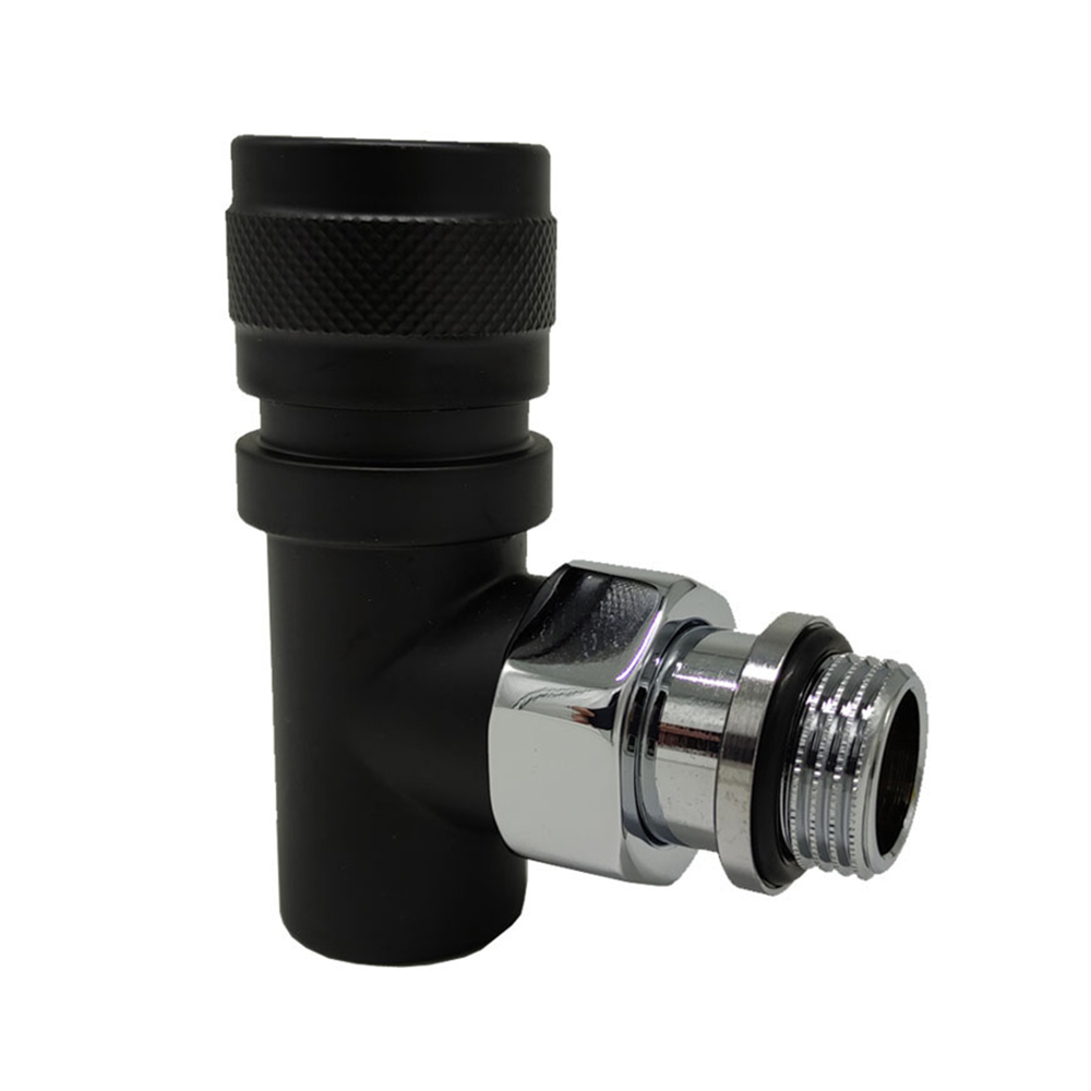 Вентиль на подачу SR Rubinetterie серия Tondera угловой, ручной регулировки, преобразуемый в термостатический, с механизмом предварительной настройки, соединение для железной трубы, хвостовик с герметичной прокладкой.