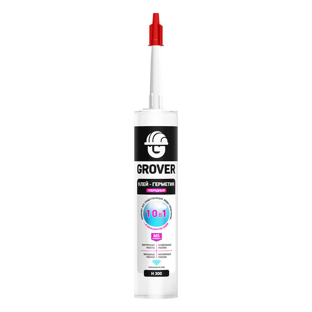 Клей-герметик Grover H300 на основе гибридного полимера обеспечивает прочное склеивание и герметизацию в одной операции. Обладает сильной клеящей способностью и превосходной адгезией к сухим и влажным, гладким и пористым поверхностям любых строительных оснований. Формирует водонепроницаемый, прочный и эластичный шов. Прочность шва на сдвиг 50 кг/см2. Удобен в работе, не растекается и легко разравнивается. Можно шлифовать и окрашивать.