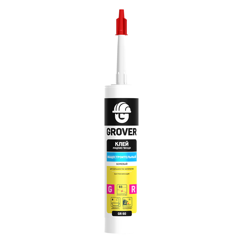 Общестроительный клей Grover GR60 на основе синтетического каучука обеспечивает быструю фиксацию склеиваемых элементов и образует прочный, долговечный и эластичный шов устойчивый к легким динамическим нагрузкам. Прочность на сдвиг 60кг/см2. Подходит для помещений с повышенной влажностью. Устойчив к воздействию влаги, химических веществ, атмосферных факторов, УФ и старению. Имеет превосходную адгезию к широкому спектру строительных материалов. Не агрессивен к пластикам.