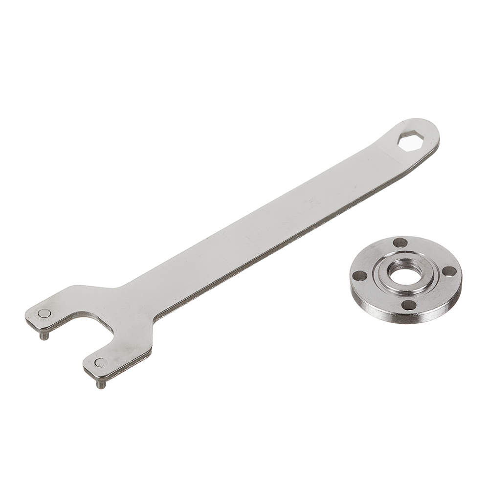 Предназначен для затягивания и отворачивания гаек М14 малых и больших угловых шлифмашин с расстоянием между отверстиями 35 мм при установке на машину отрезных и шлифовальных кругов.