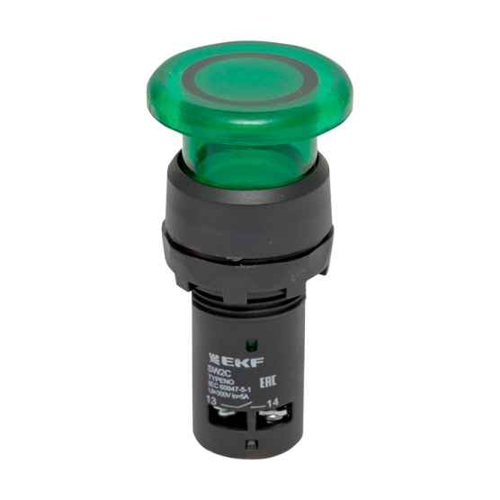Кнопка грибок EKF PROxima SW2C-MD 230 В 1NO IP54 без фиксации с подсветкой зеленая (sw2c-md-gg-24)