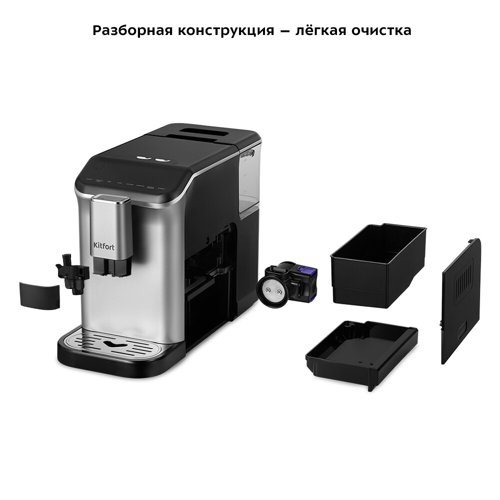 Кофемашина автоматическая Kitfort КТ-7166 черная/серебро