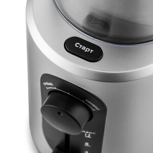 Кнопка включения расположена на корпусе около чаши. Защитный механизм не позволит включить кофемолку, если крышка установлена неправильно.