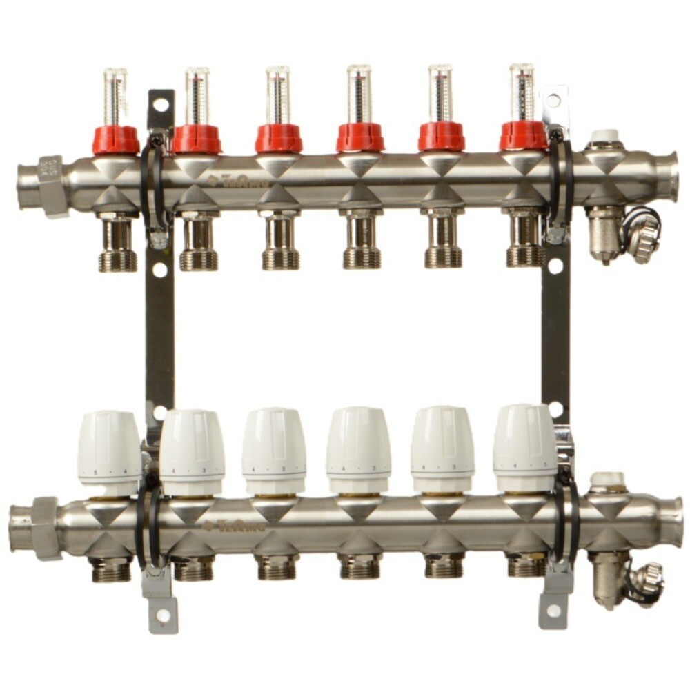 Коллекторная группа с расходомерами Terma 1 ВР(г) х 6 выходов 3/4 НР(ш) ЕК х 1 ВР(г)
