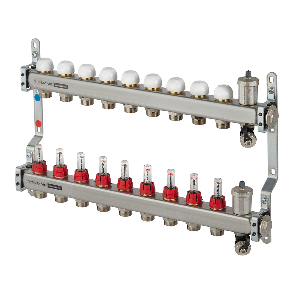 Коллекторная группа с расходомерами Tiemme 1 ВР(г) х 9 выходов 3/4 НР(ш) ЕК х 1 ВР(г)