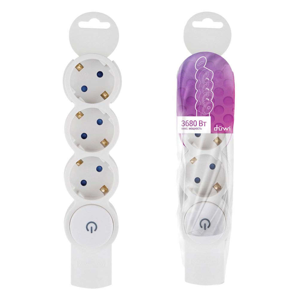 Колодка электрическая 3 розетки Duwi 16 А 230 В 3,68 кВт с выключателем белая (32018 2)