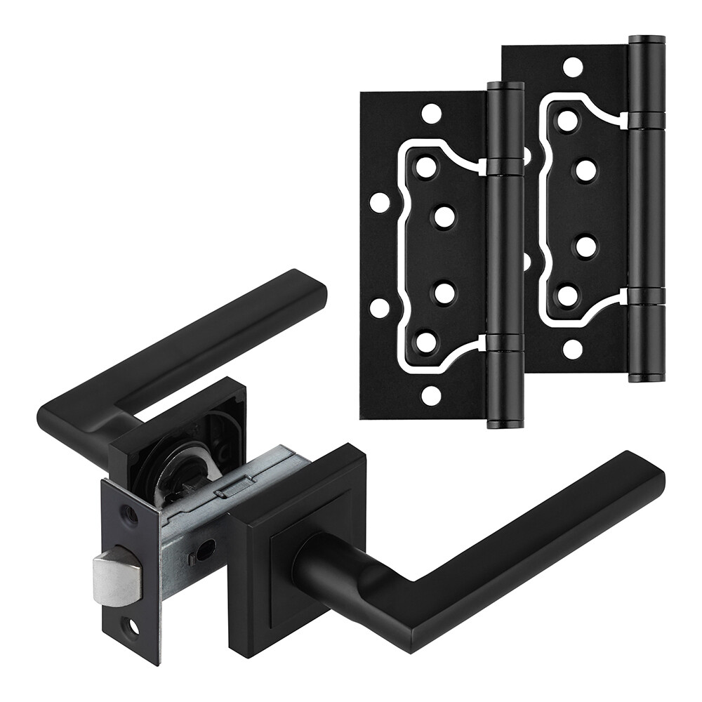 Комплект фурнитуры для двери Corsa Deco Primrose с защелкой и петлями квадратная розетка черный (990309)