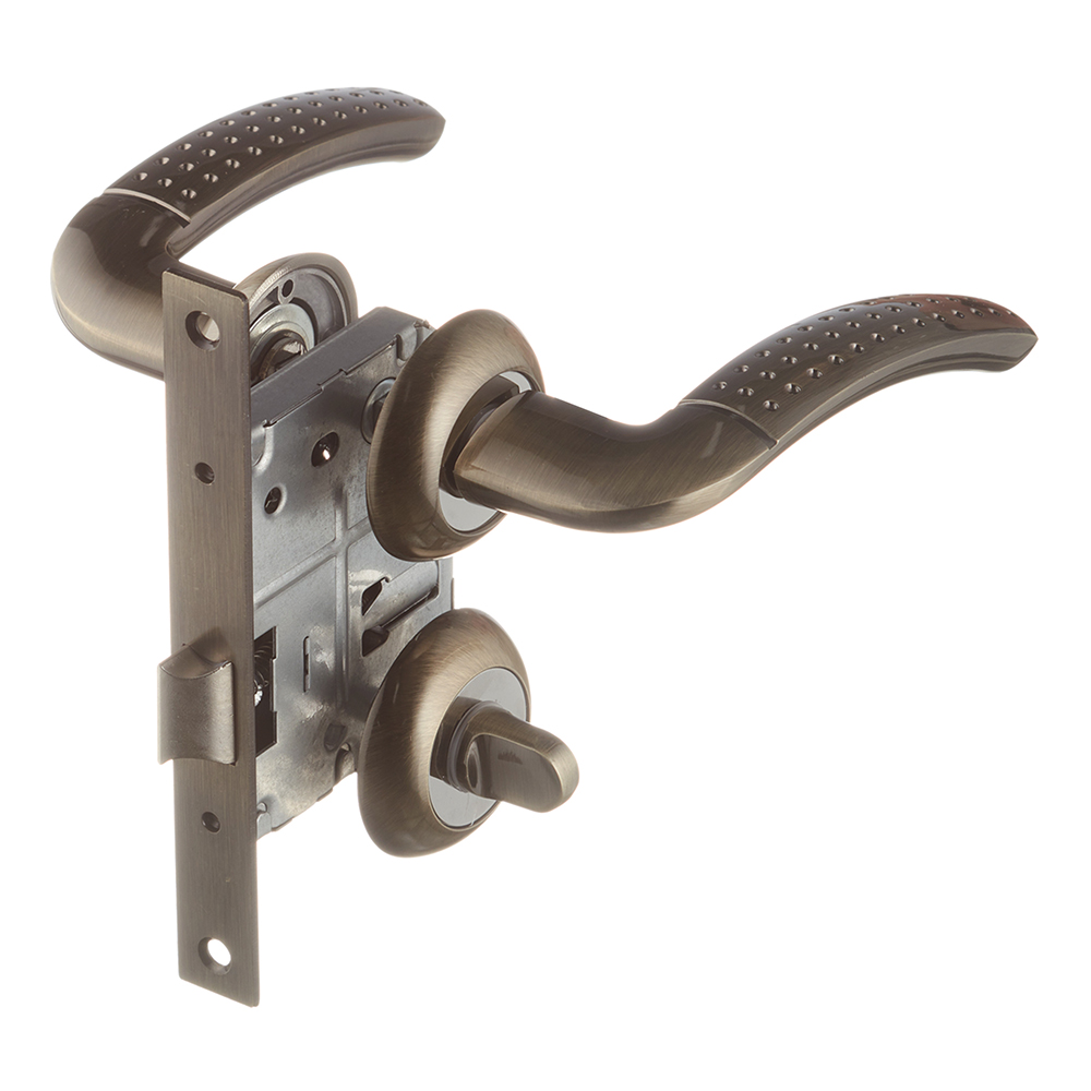 Комплект фурнитуры для двери Corsa Deco Rowan с замком и фиксатором круглая розетка античная бронза