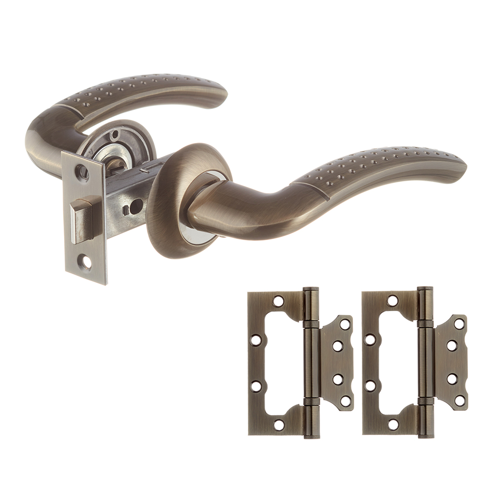 Комплект фурнитуры для двери Corsa Deco Rowan с защелкой и петлями круглая розетка античная бронза