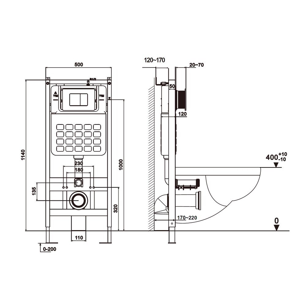 Комплектация: Унитаз — 1 шт., сиденье для унитаза — 1 шт., инсталляция — 1 шт., кнопка смыва — 1 шт.