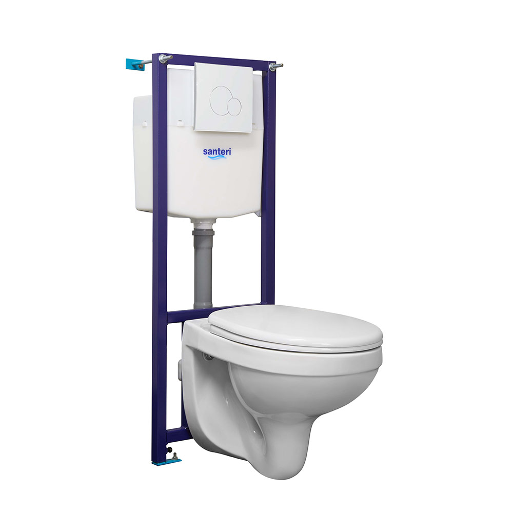 Комплект инсталляции Santeri с унитазом Альфа с кнопкой белой и сиденьем полипропилен микролифт (138164S0000B2)