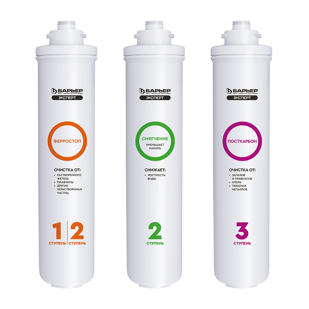 Комплектация: 1я ступень «Ферростоп» 1 шт; 2я ступень «Смягчение» 1 шт; 3я ступень «Посткарбон» 1 шт.