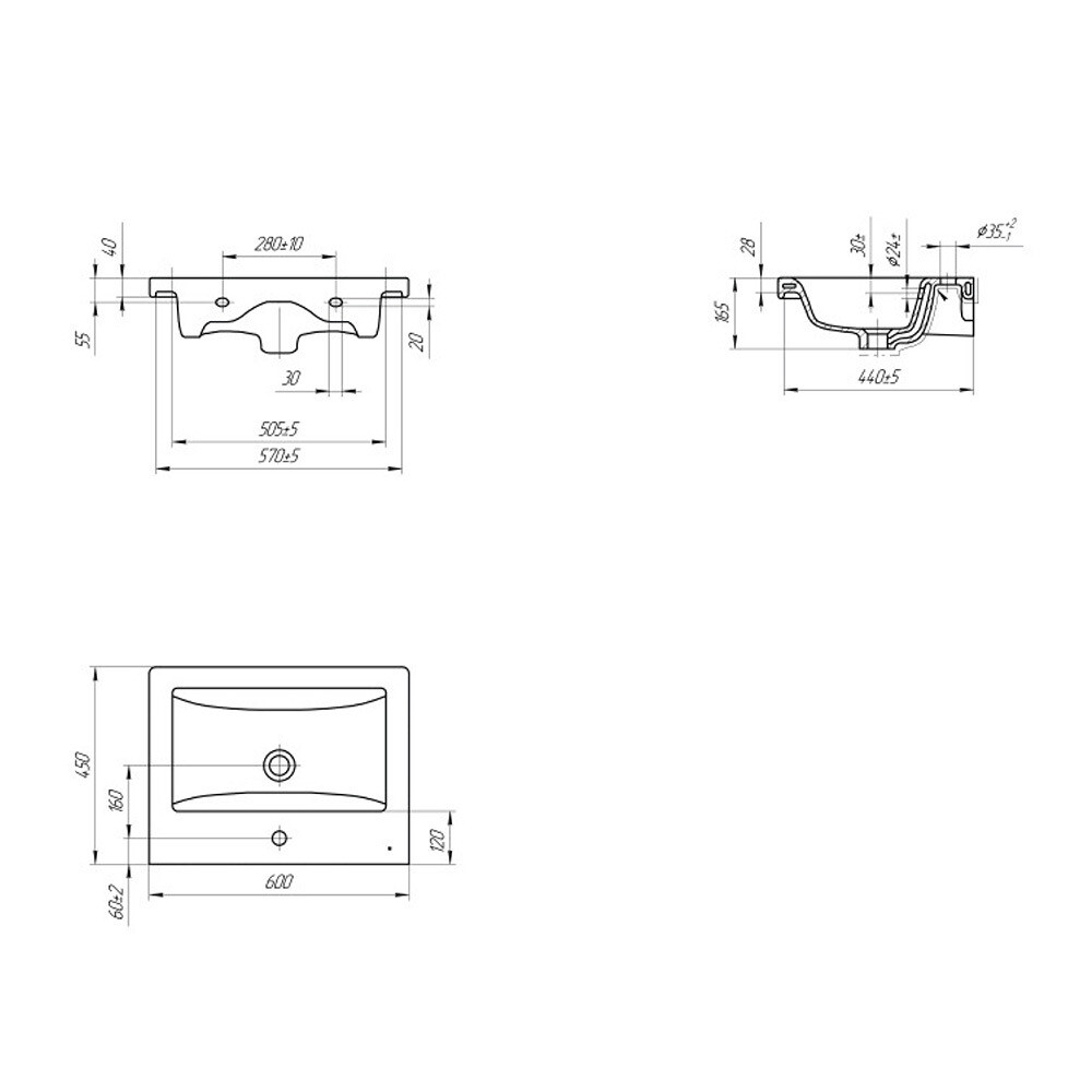 Комплект тумба с раковиной Sanstar Noche 60 см подвесная графит софт (422.1-1.4.1.ККОМ)