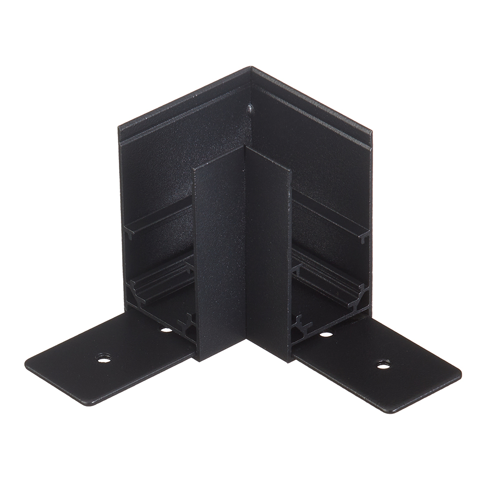 Угловой коннектор для накладного магнитного шинопровода Nova TRM-S20. Материал — Алюминий. Коннектор предназначен для механического соединения двух отрезков шинопровода под прямым углом на плоскости.