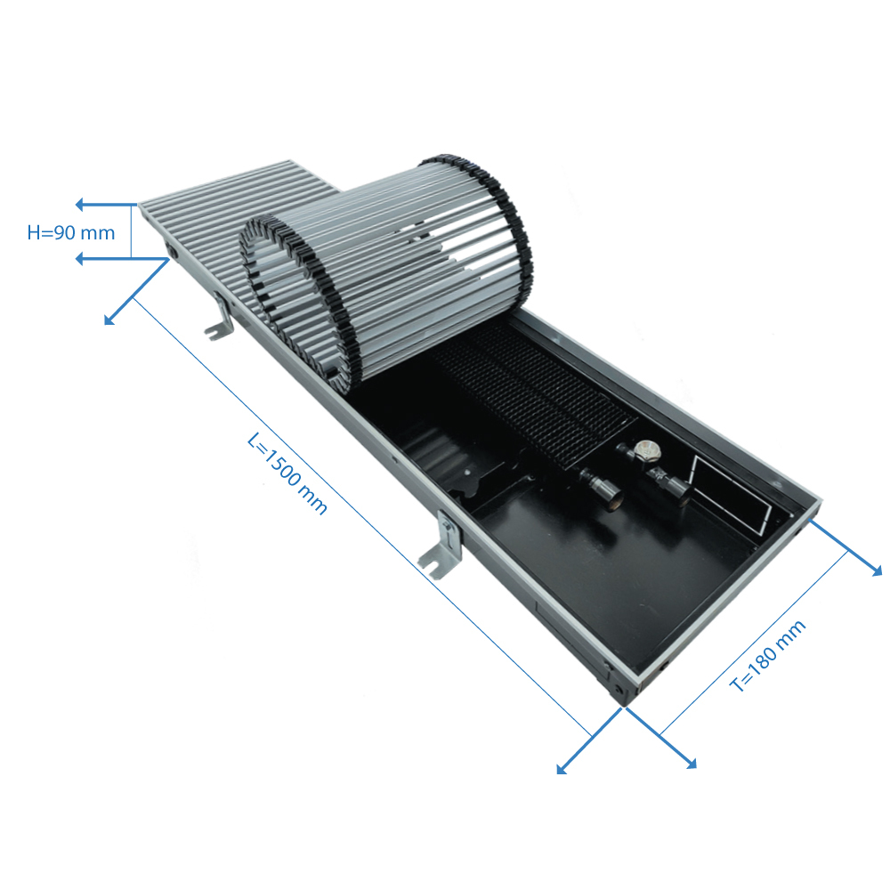 Конвектор внутрипольный Gekon Eco с 1 теплообменником 1500х180х90 мм боковое подключение