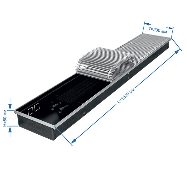 Конвектор внутрипольный Gekon Eco с 1 теплообменником 1800х230х80 мм боковое/нижнее подключение