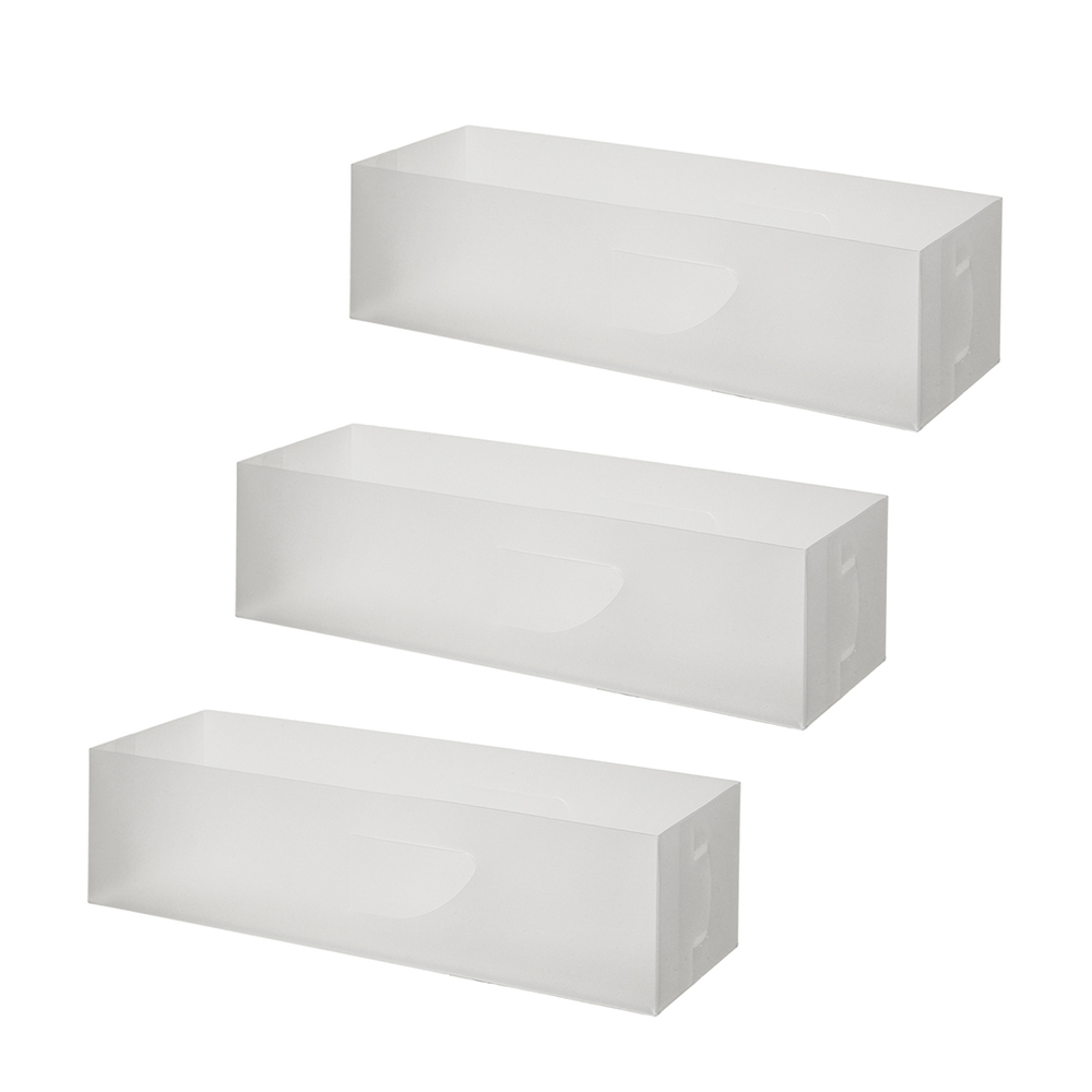 Набор эргономичных складных коробов для хранения мелочей в ящиках. Удобная складная конструкция позволяет хранить короба в сложенном виде.