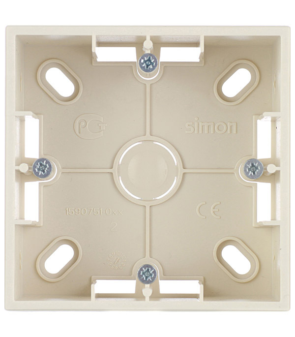 Предназначена для крепления электроустановочных изделий Simon 15 путем открытого монтажа; используется для разветвления проводов и защиты кабельных соединений от климатических и механических воздействий.