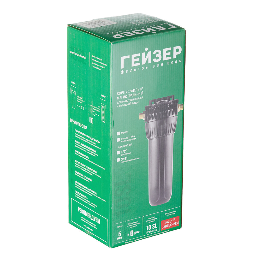 Корпус Гейзер 10SL 3/4″ изготовлен из термостойкого полиамида. Корпус рассчитан на работу под давлением и установку на входе в систему горячего или холодного водоснабжения. В производстве корпусов используются материалы пищевого класса.