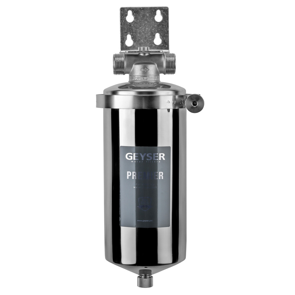 Главная / Каталог / Инженерные системы / Водоснабжение / Фильтры для очистки воды и комплектующие / Магистральные фильтры / Корпуса для предочистки воды / Корпус фильтра Гейзер Премьер для холодной и горячей воды нержавеющая сталь 10BB 1 НР(ш) х 1 НР(ш) серебро
