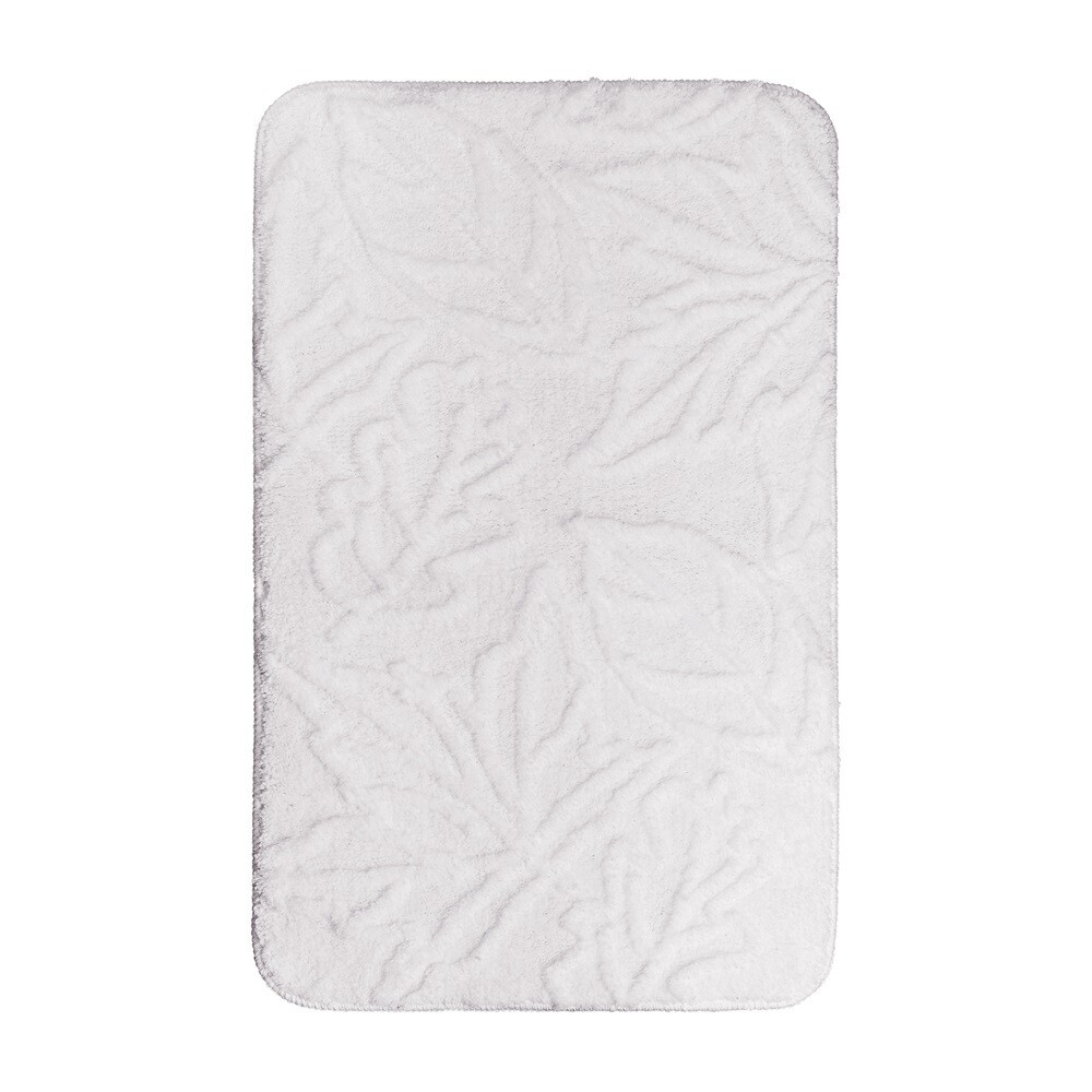 Дизайн мягкого коврика Shelest вдохновлен природными мотивами — осенней листвой и безмятежной атмосферой заповедных лесов. Размер изделия 50х80 см. Коврик выполнен из микрофибры, мягкий ворс приятен на ощупь и не требует особого ухода. Снабжен латексной антискользящей основой. Нежный белый цвет и рельефный рисунок в виде листьев наполнят пространство природной гармонией и легко впишутся в ванную в любом стиле.