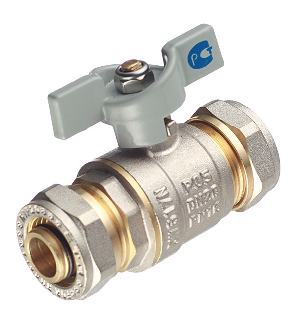 Кран шаровой латунный 20 обж(ц) х 20 обж(ц) для металлопластиковых труб бабочка прямой