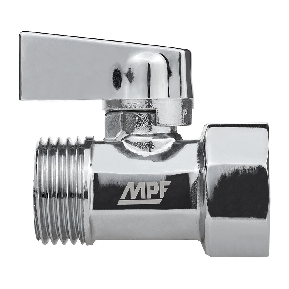 Кран шаровой латунный MPF 1/2 ВР(г) х 1/2 НР(ш) к бытовой технике хром мини проходной ГОСТ Р 59553-2021 (ИС.081214)