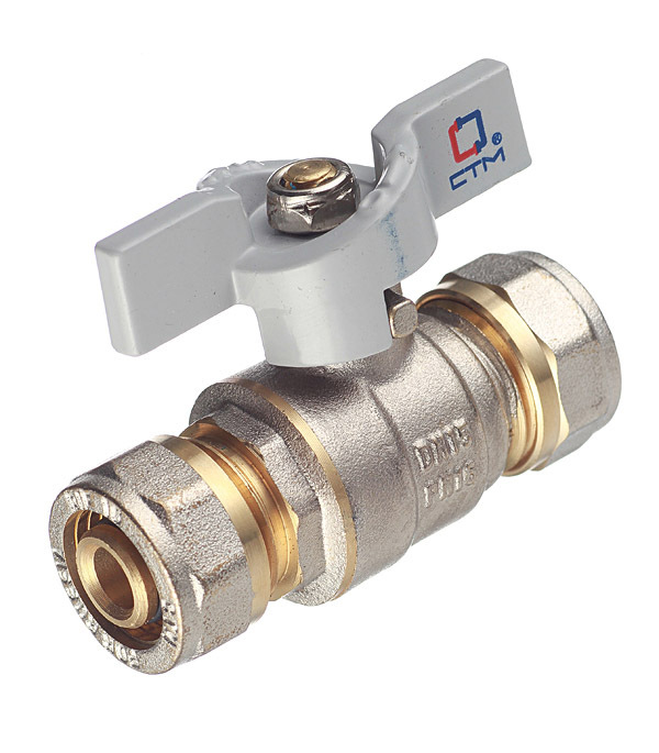 Кран шаровой латунный СТМ 16 обж(ц) х 16 обж(ц) для металлопластиковых труб бабочка прямой