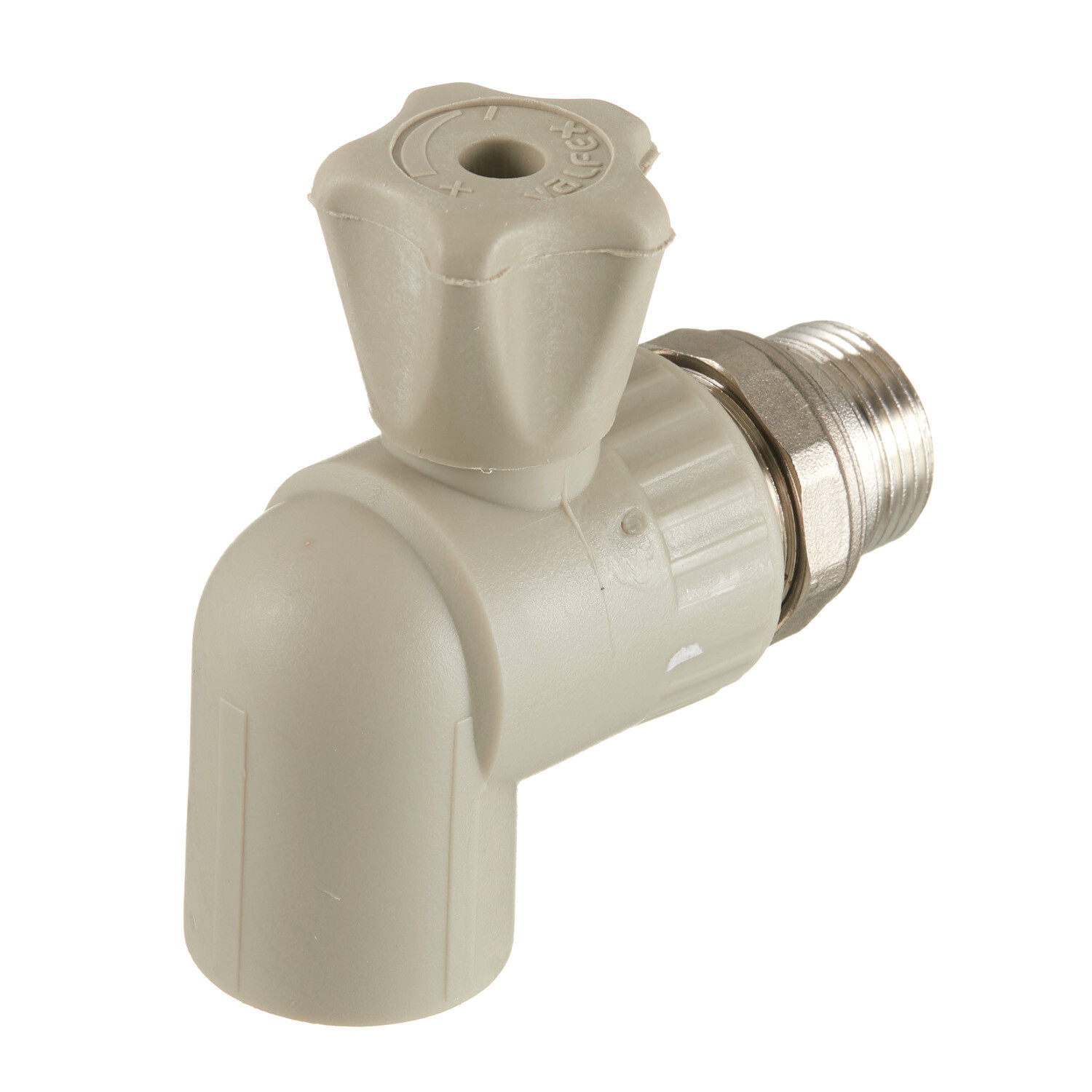 Кран шаровой полипропиленовый Valfex 25 мм х 3/4 НР(ш) с американкой угловой серый (10148025Г)
