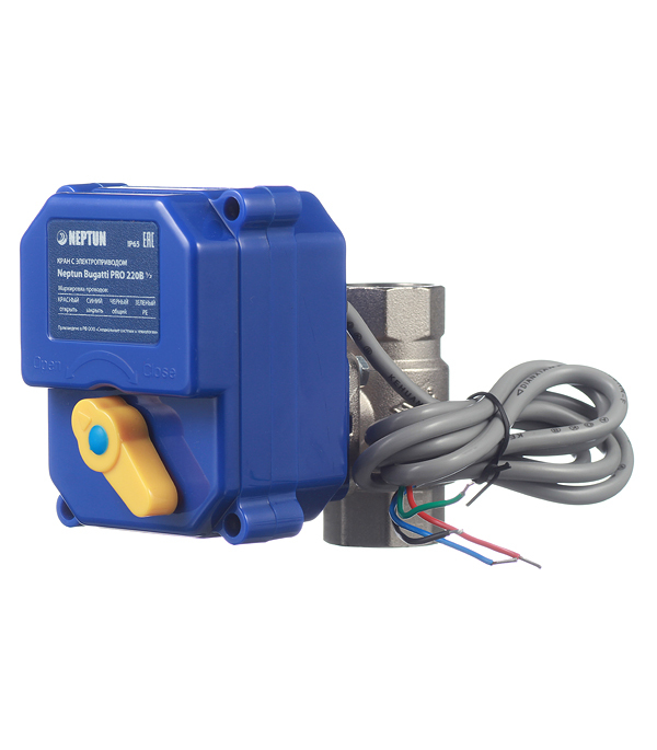 Кран шаровой с электроприводом латунный Neptun Bugatti Pro 1/2 ВР(г) х 1/2 ВР(г) мини прямой 220 В (NEPBugPro220-12)