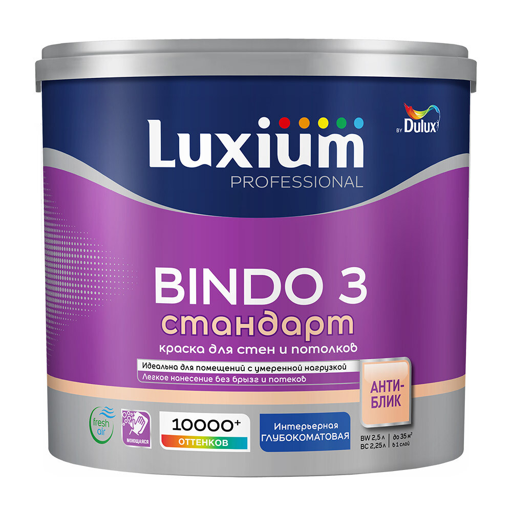 Краска интерьерная Dulux/Luxium Bindo 3 база BW белая 2,5 л