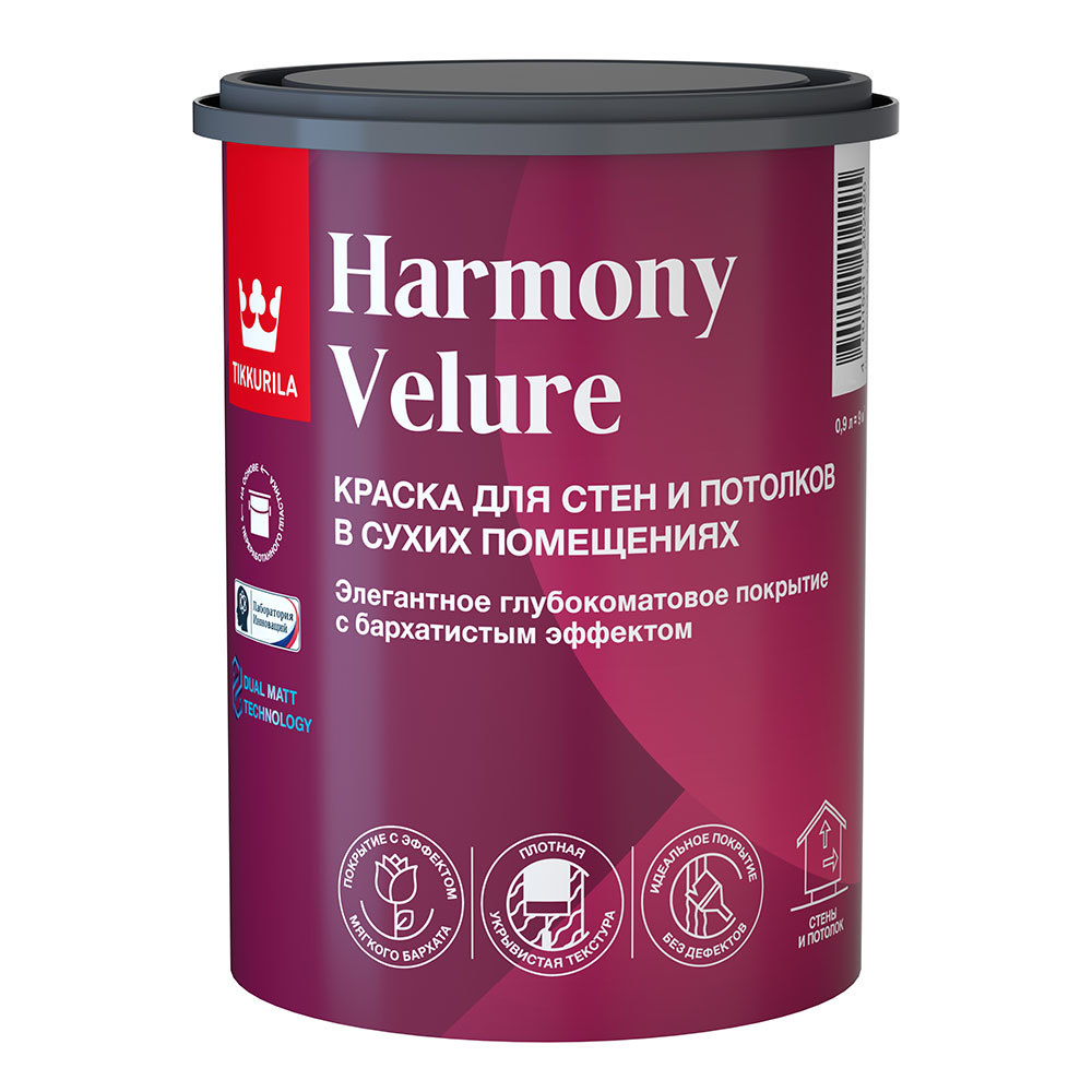 Краска моющаяся Tikkurila/Tikkivala Harmony Velure база С бесцветная 0,9 л