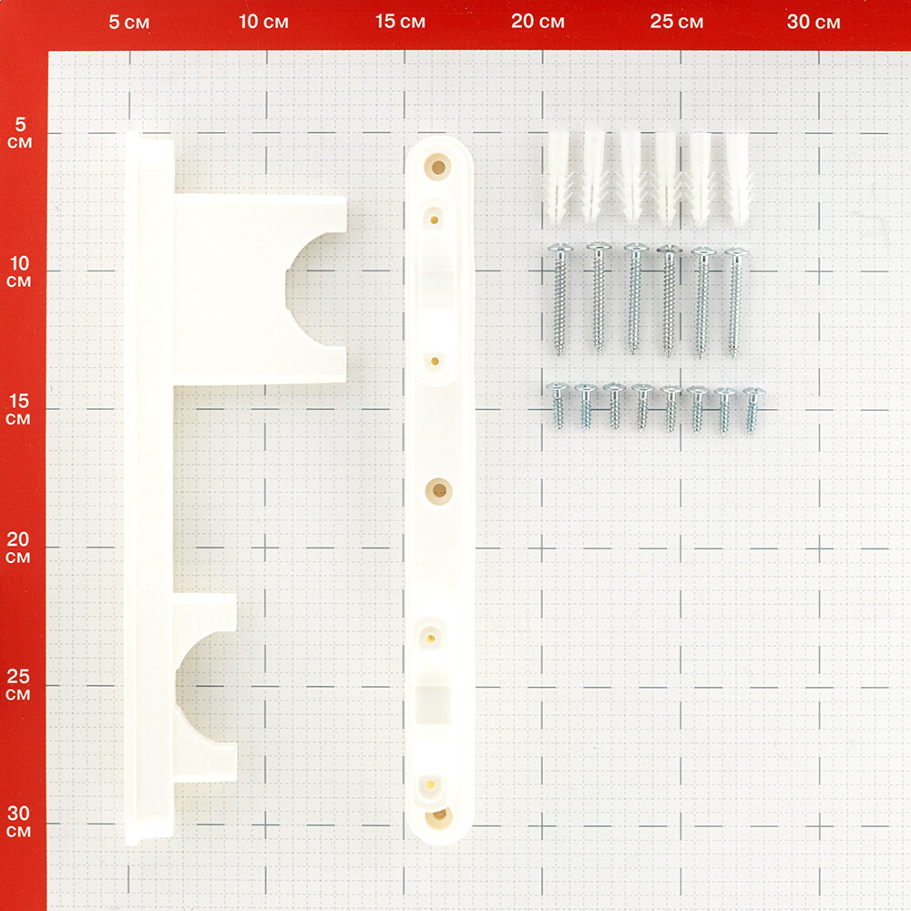 Предназначено для монтажа двух полипропиленовых коллекторов на несущей поверхности с обеспечением их разноса по высоте и глубине.