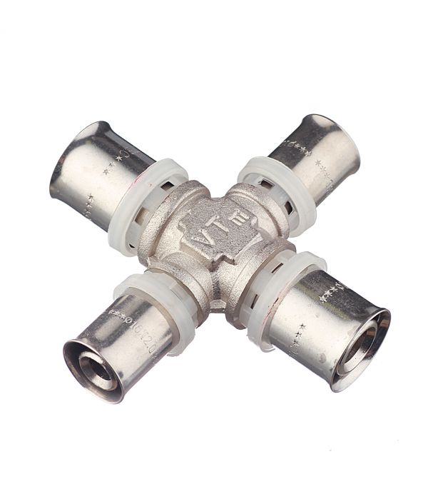 Предназначена для соединения четырех металлополимерных труб ( металлопластиковых труб) или труб из сшитого полиэтилена. Типоряд пресс-крестовин VALTEC включая в себя равнопроходные модели и модели с выходами разного диаметра.