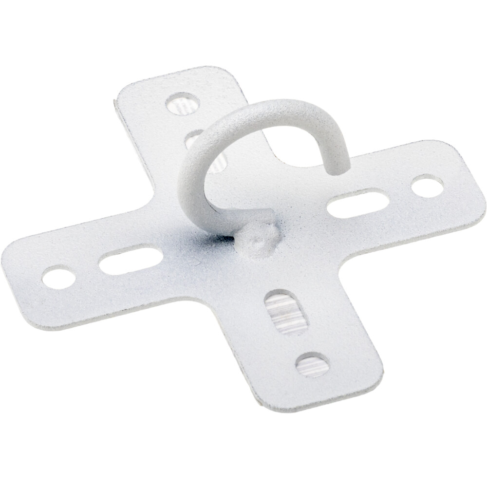 Кронштейн-переходник от бренда Duwi — это специальное приспособление для крепления подвесных люстр и светильников с цоколями Е14, Е27, GU10, GU5.3 и др. Переходник выполнен из стали толщиной 1 мм. Окрашен в белый цвет. Выдерживает нагрузку до 20 кг, поэтому подойдет в том числе и для массивных многоярусных подвесных люстр. Диаметр основания — 75х75 мм, высота крюка — 25 мм. Кронштейн подходит для фиксации основания светильника. Крепится с помощью саморезов, оснащен прорезями. Крюк закрепляется на потолке или на специальной закладной. После установки верхней части крепления производят подключение проводов люстры. Затем ушко люстры вешают на смонтированный крючок. При монтаже подвесных люстр на натяжной потолок преимуществом является то, что такой переходник позволяет выполнить аккуратный монтаж основания светильника к натяжному потолку. При этом полотно потолка не деформируется.