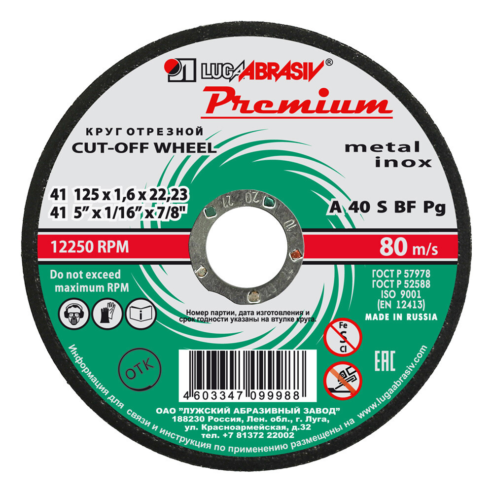 Круг отрезной по металлу Луга Premium 125х22,23х1,6 мм