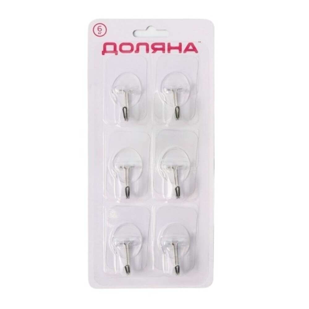 Крючок для ванной Доляна Классика одинарный самоклеящийся металл/пластик прозрачный (6 шт.) (7089053)