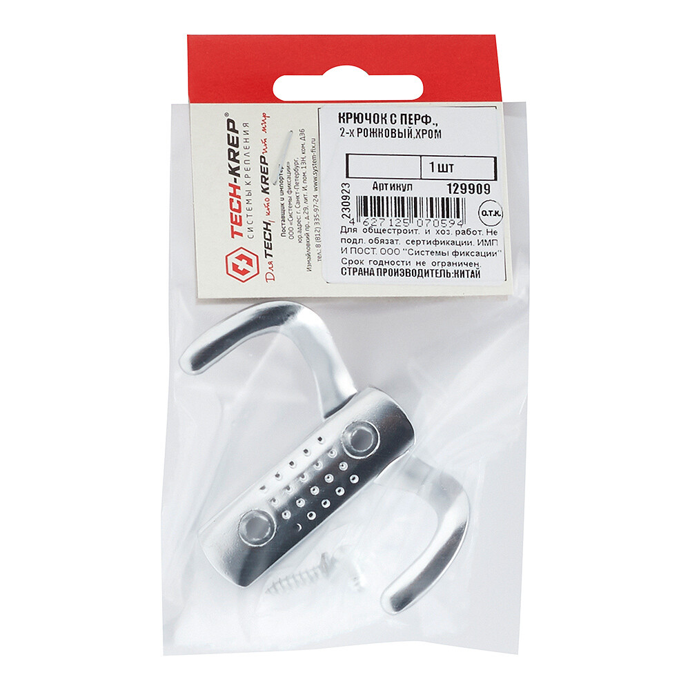 Крючок-вешалка двухрожковый хром (129909)