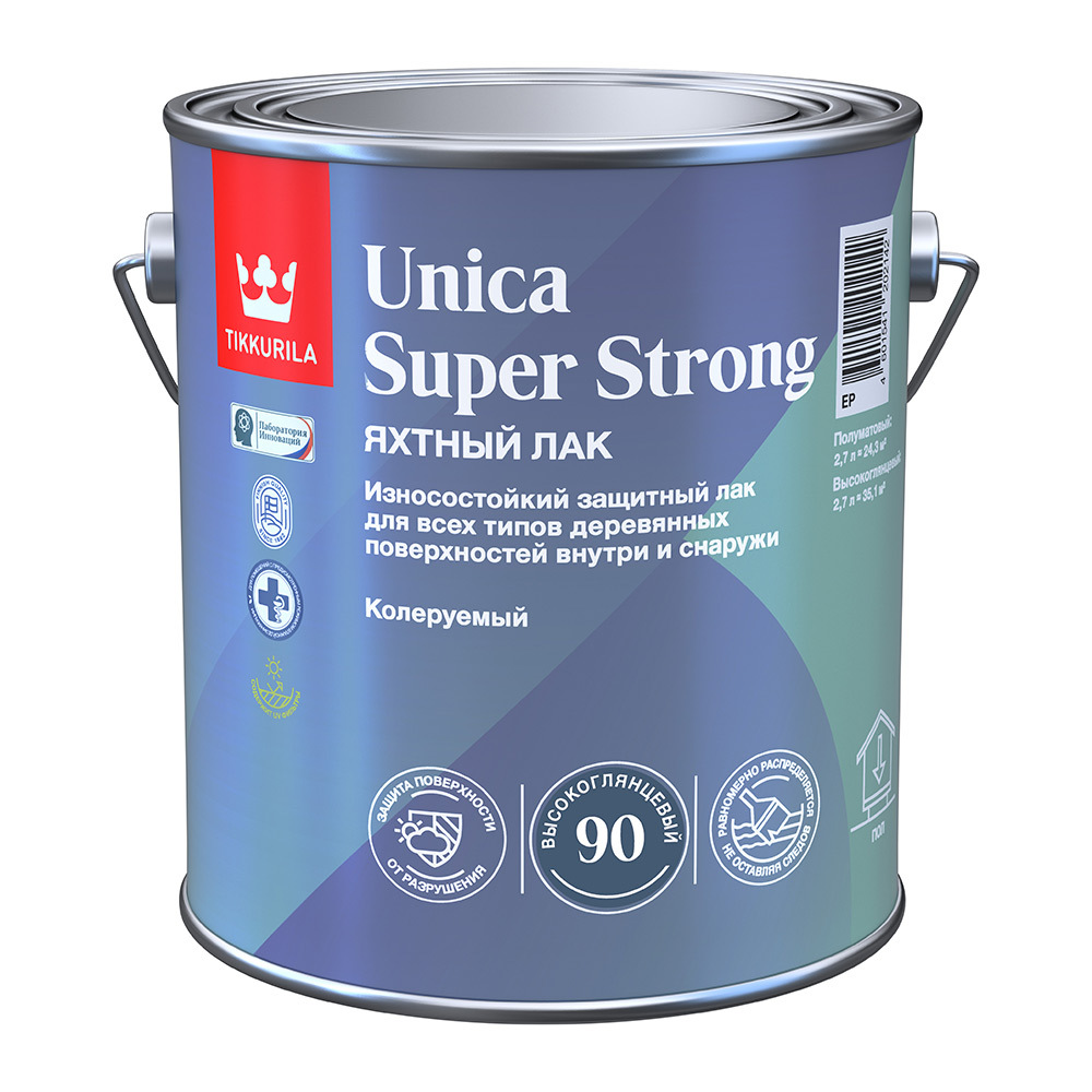 Лак алкидно-уретановый яхтный Tikkurila Unica Super Strong основа EP бесцветный 2,7 л высокоглянцевый
