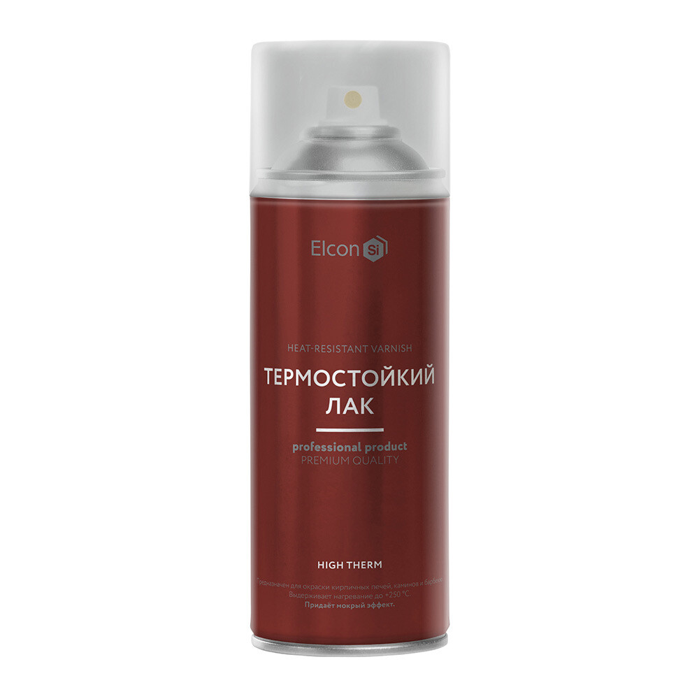 Термостойкий кремнийорганический лак. Термостойкий лак Elcon High Therm предназначен для защитно-декоративного окрашивания кирпичных, бетонных, каменных, металлических и иных типов поверхностей, подвергающихся в процессе эксплуатации воздействию температуры до +250 °С. Внешний вид покрытия зависит от числа нанесенных слоев — от полуматового до полуглянцевого.
