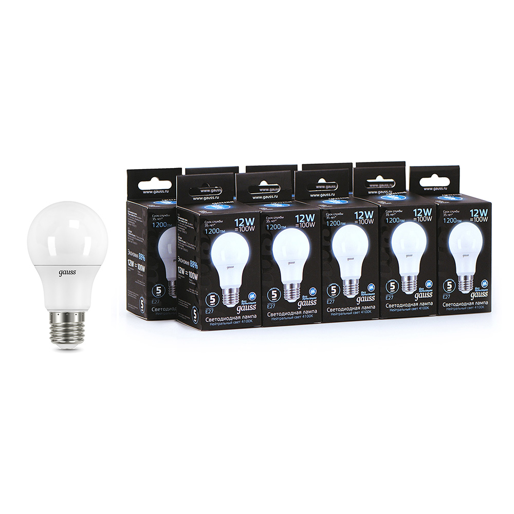 Лампа светодиодная Gauss E27 4100К 12 Вт 1200 Лм 150-265 В груша A60 матовая (10 шт.)