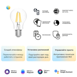 Предназначена для освещения пространств всех типов. «Умные» филаментные лампы благодаря прозрачной колбе освещают комнаты более равномерно, чем большинство светодиодных ламп других видов.