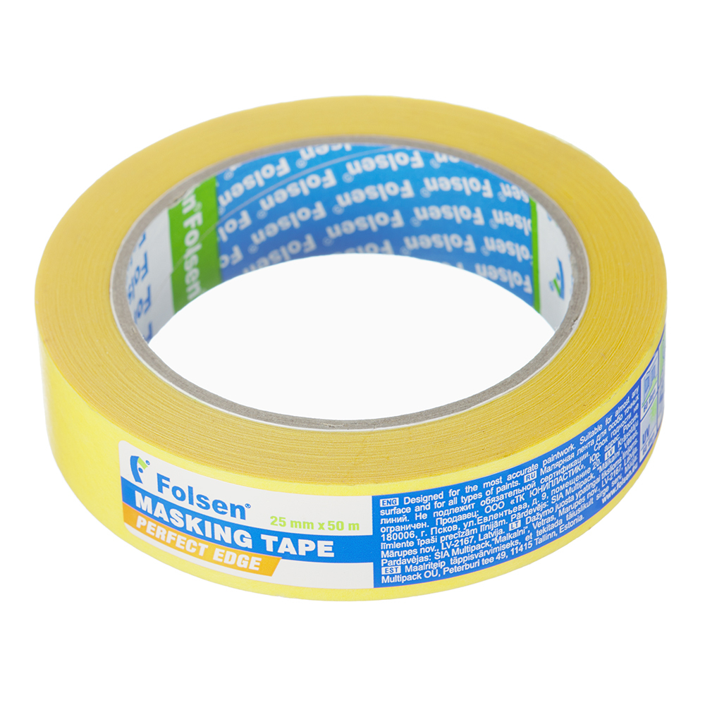 Лента малярная Folsen Professional для четкого края желтая 25 мм 50 м УФ-стойкая