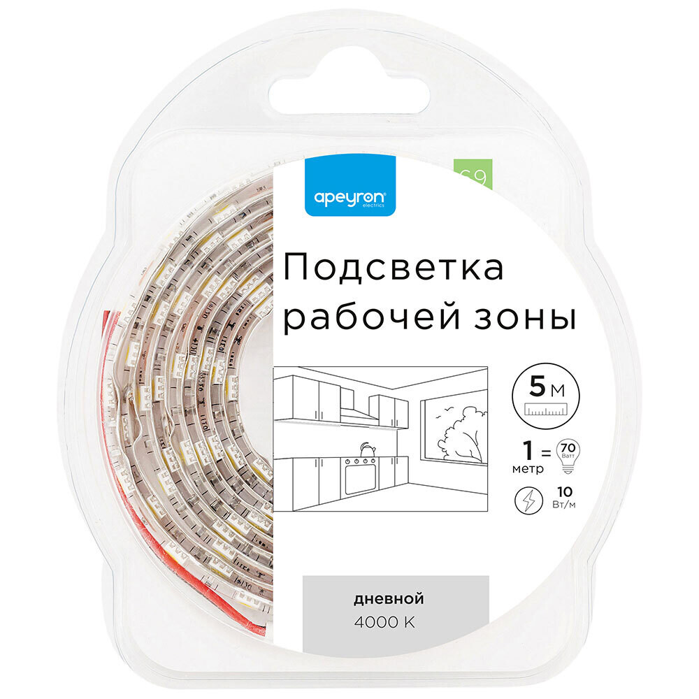 Лента светодиодная SMD 5050 4000К 12 В 10 Вт/м 5 м IP20 Apeyron (69ОО)