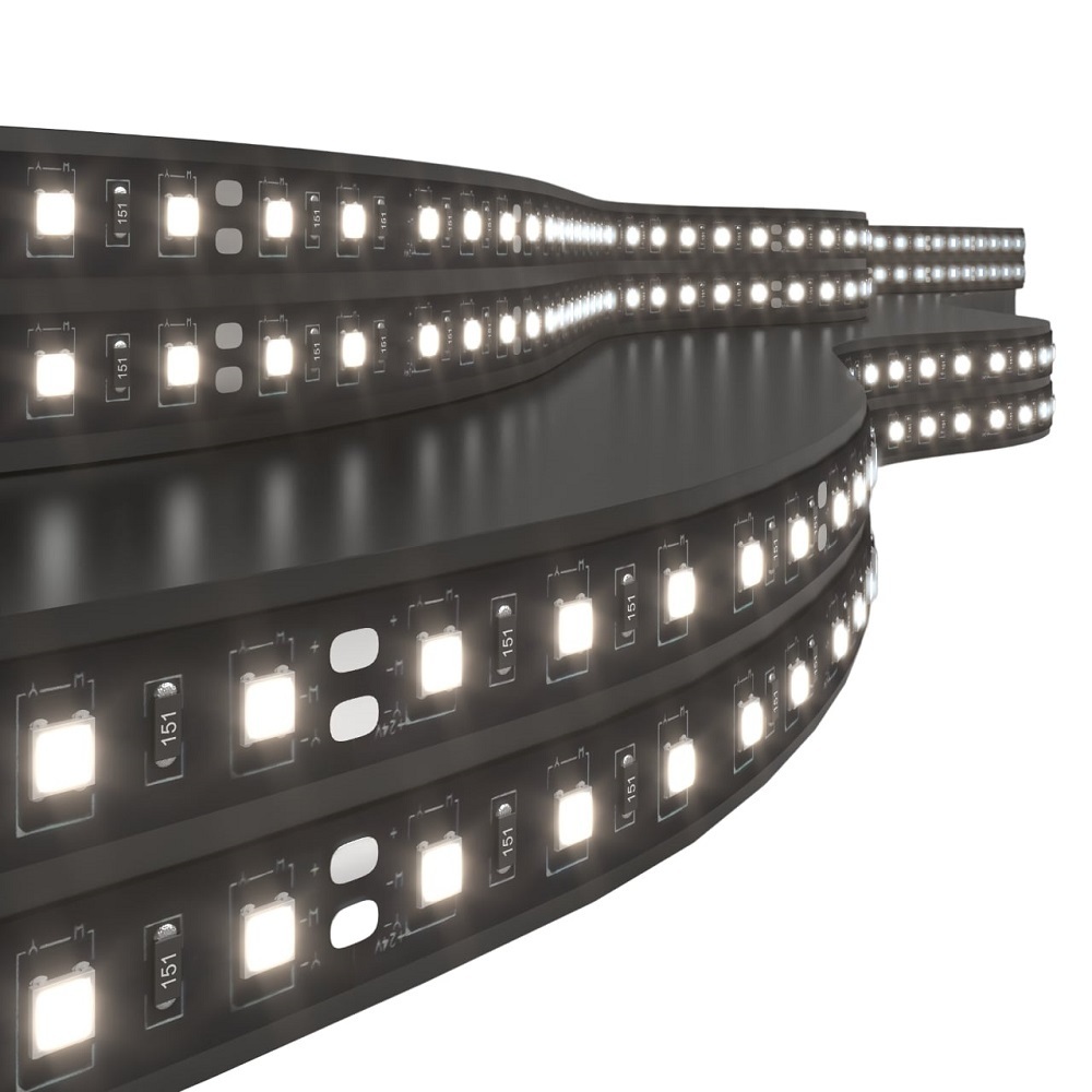 Используется для создания световых композиций в современных интерьерах, а также для декоративной подсветки зеркал и предметов мебели. Создавайте световые линии на темных поверхностях. Лента поставляется в рулоне с припаянным выводом проводов с цветовым обозначением для удобного подключения. Длина ленты составляет 5 м. Светодиодную ленту можно укоротить, отрезав нужную часть в местах для реза, а при необходимости удлинить, используя коннекторы. Гибкость ленты и надежная клеевая основа позволяют устанавливать ленту на различные поверхности. Для подключения светодиодной ленты к сети питания используются понижающие трансформаторы, преобразующие 220 В переменного тока в 24 В постоянного тока (AC 220 — DC 24V). Широкий диапазон температуры окружающей среды позволяет использовать ленту в неотапливаемых помещениях при температуре до -25С. Срок службы светодиодов составляет 50000 часов.